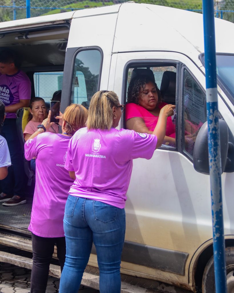 Durante a mobilização, equipes promovem a distribuição de materiais informativos e a fixação de adesivos em pontos estratégicos da cidade, como pontos de ônibus, vans, mototáxis e táxis, ampliando o alcance da mensagem e orientando a população sobre a importância do respeito e da denúncia.